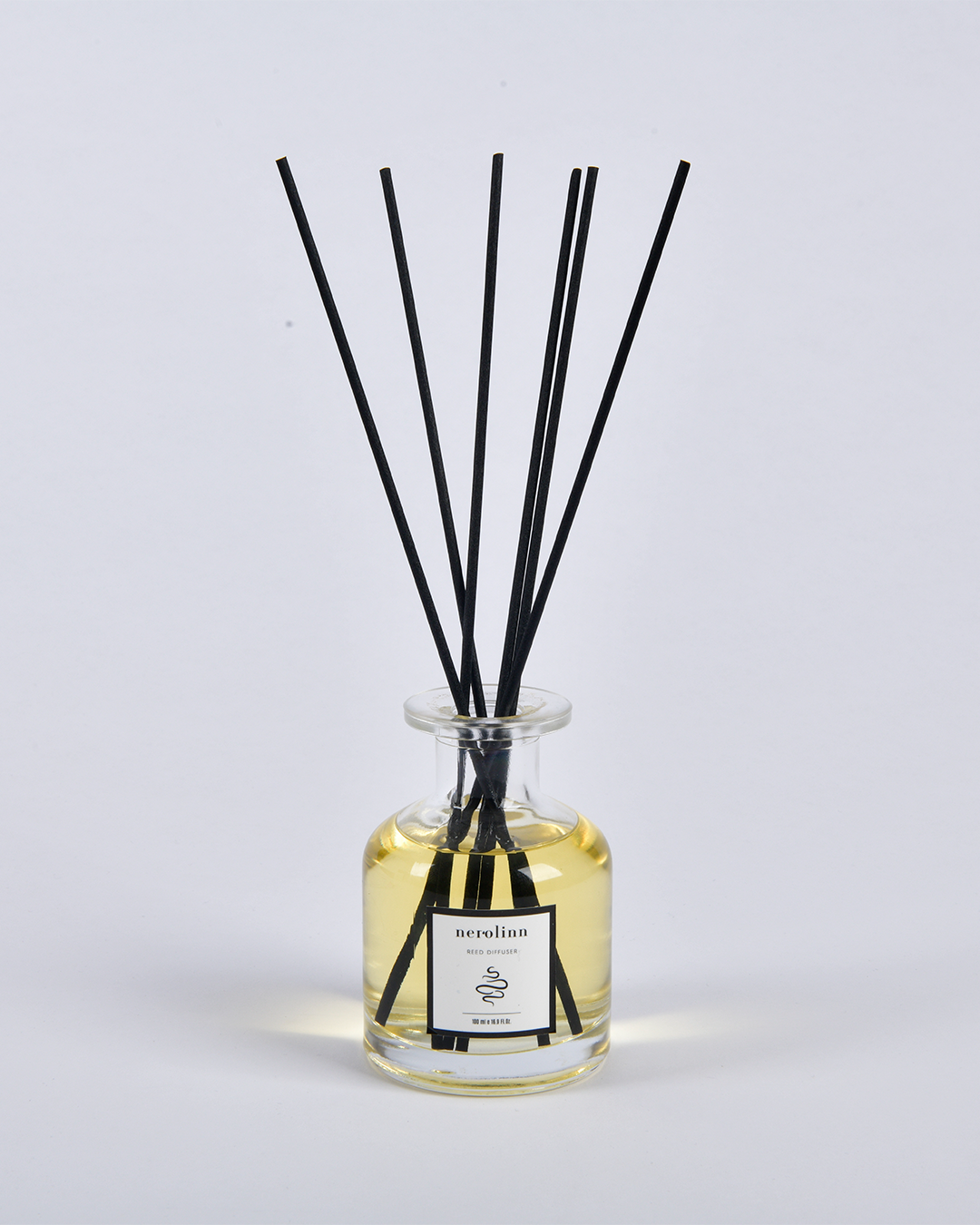 Insert the reeds into the bottle and allow them to absorb the fragrance. Flip the reeds occasionally for a stronger scent.